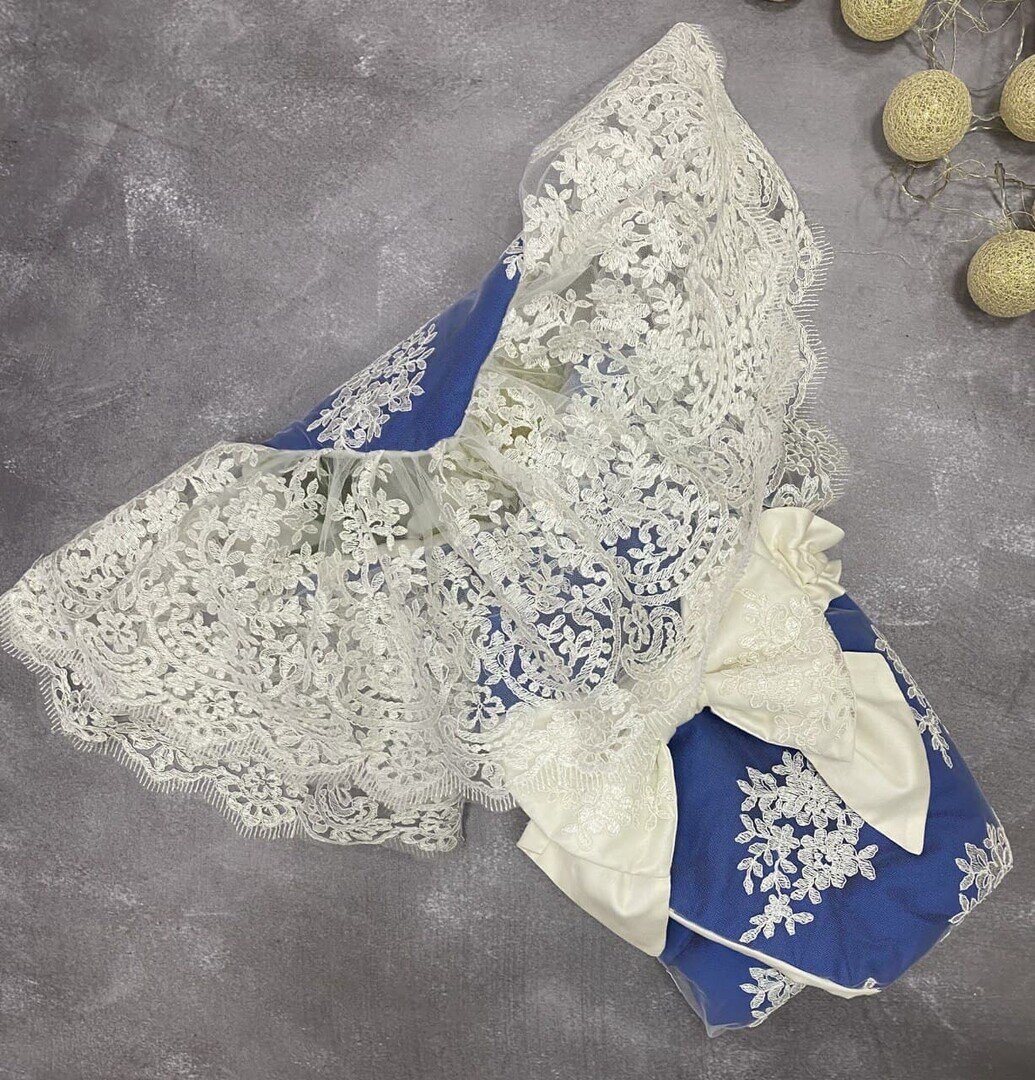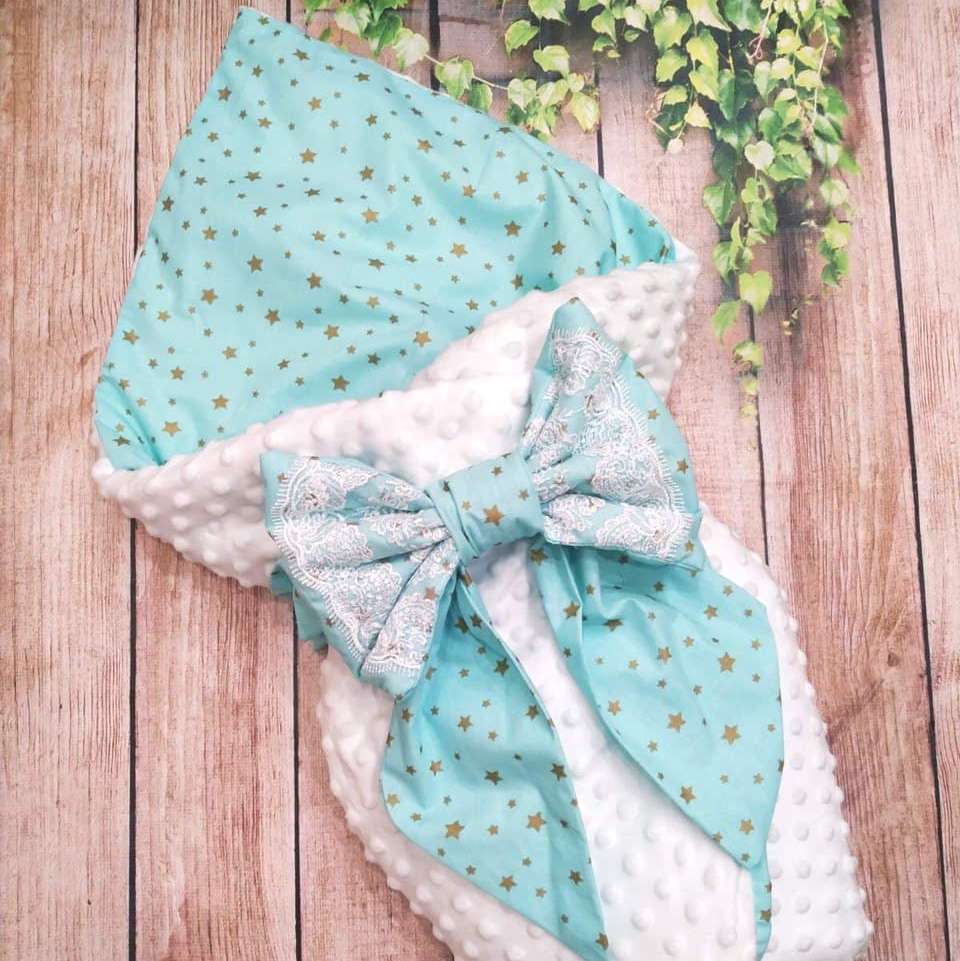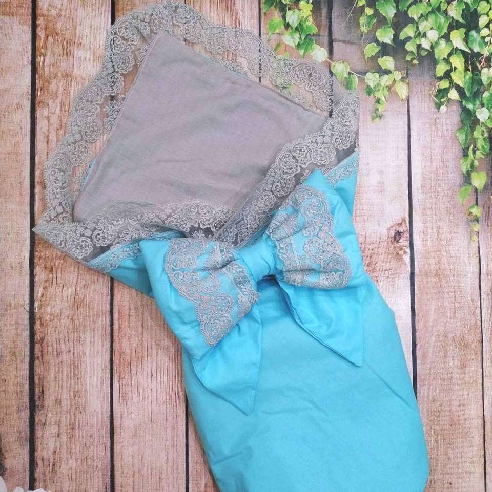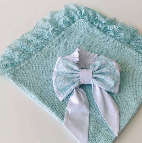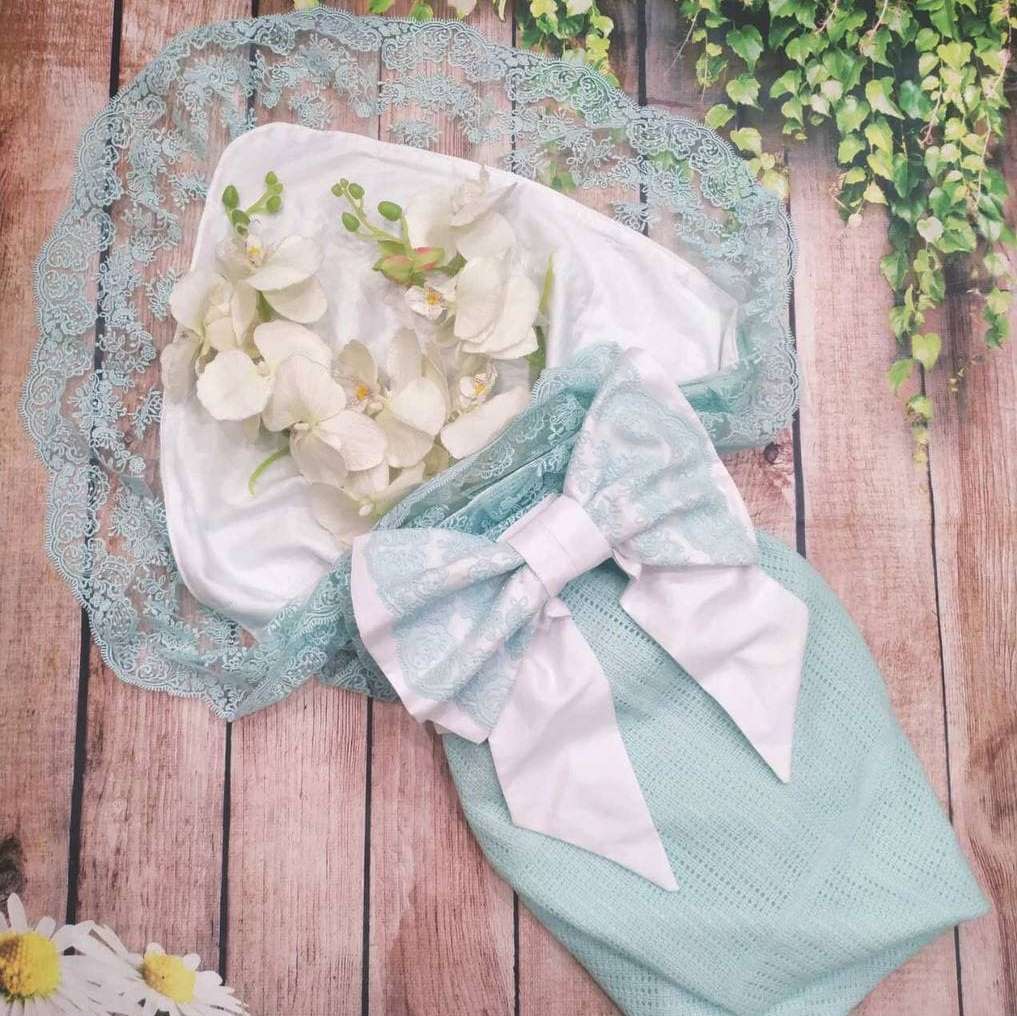 Конверт-плед з філейного полотна та мережива «М'ятна краса» гарний набір на виписку з пологового будинку, виготовлений із натуральних тканин зі 100 % бавовни. Для виготовлення використовуються високоякісні тканини фабрик Туреччини. Чудово підійде для хлопчика або дівчинки.