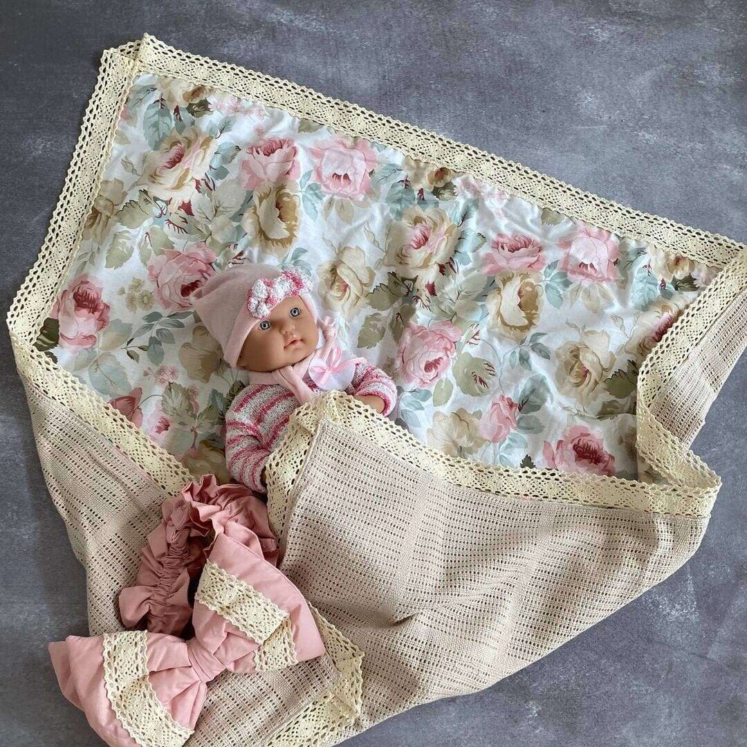 Конверт-плед з філейного полотна з мереживом світло-персикового кольору гарний набір на виписку з пологового будинку, виготовлений із натуральних тканин зі 100 % бавовни. Для виготовлення використовуються високоякісні тканини фабрик Туреччини. Чудово підійде для хлопчика або дівчинки.