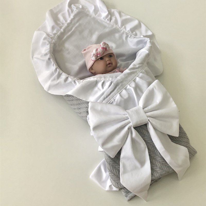 Конверт-плед з бавовняного полотна косичка та сатину з рюшів «Сіро-білий» гарний набір на виписку з пологового будинку, виготовлений із натуральних тканин зі 100 % бавовни. Для виготовлення використовуються високоякісні тканини фабрик Туреччини. Чудово підійде для хлопчика або дівчинки.