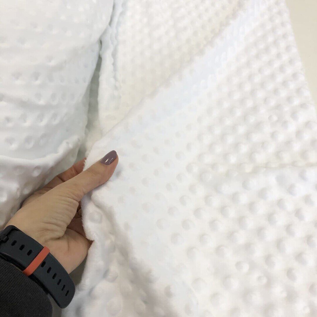 Тканина Плюш Мінкі ультра софт білий (Minky Dots Ultra Soft White) виробництва Туреччини - підходить для виготовлення подушок, пледів, дитячих постільних комплектів, піжам, халатів, конвертів. Тканина пухнаста та дуже м'яка. Вона виробляється екологічною, не викликає алергії та подразнень