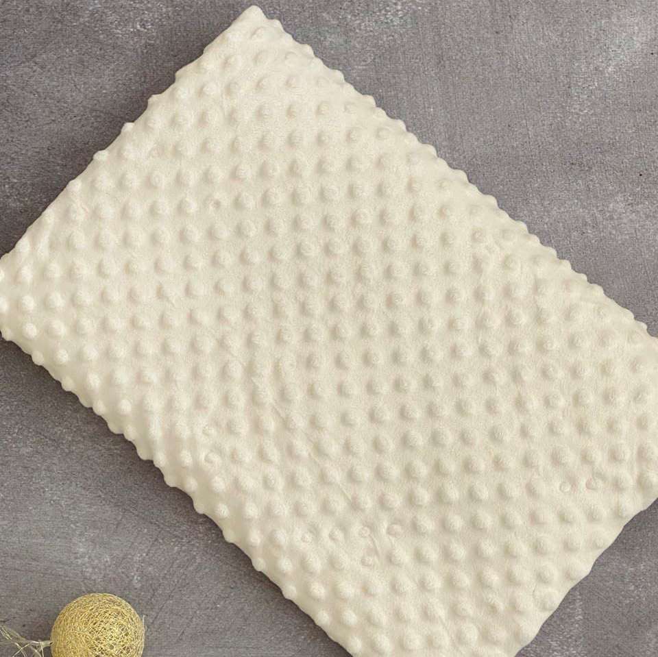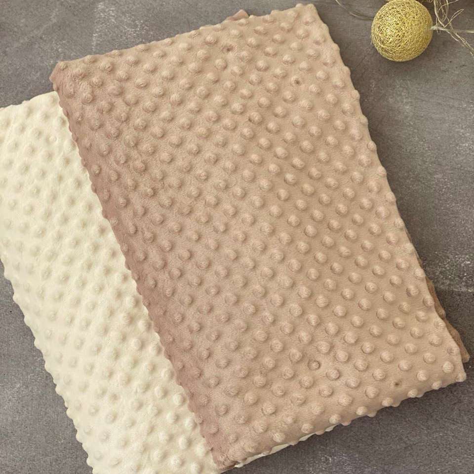 Тканина Плюш Мінкі горошок Крем (Minky Dots Cream) виробництва Туреччини - підходить для виготовлення подушок, пледів, дитячих постільних комплектів, піжам, халатів, конвертів. Тканина пухнаста та дуже м'яка. Вона виробляється екологічною, не викликає алергії та подразнень