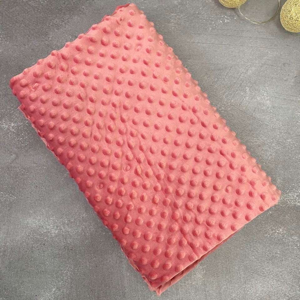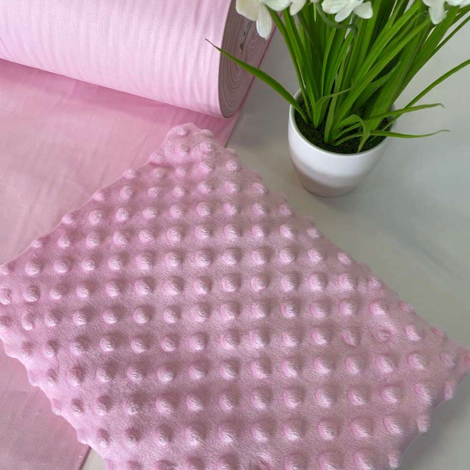 Тканина Плюш Мінкі горошок Рожевий (Minky Dots Pink) виробництва Туреччини - підходить для виготовлення подушок, пледів, дитячих постільних комплектів, піжам, халатів, конвертів. Тканина пухнаста та дуже м'яка. Вона виробляється екологічною, не викликає алергії та подразнень