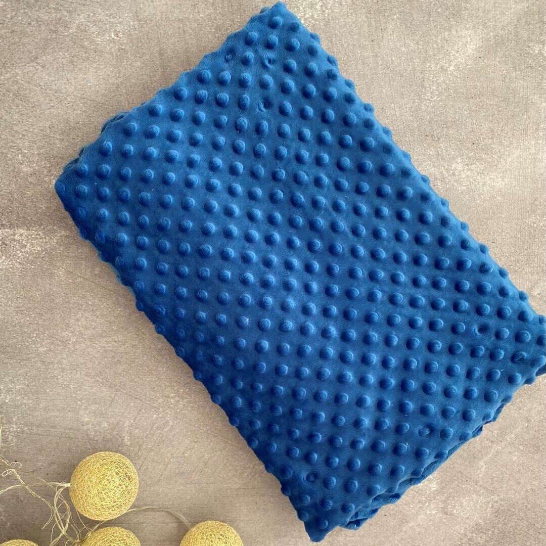 Тканина Плюш Мінкі горошок Блакитний (Minky Dots Blue) виробництва Туреччини - підходить для виготовлення подушок, пледів, дитячих постільних комплектів, піжам, халатів, конвертів. Тканина пухнаста та дуже м'яка. Вона виробляється екологічною, не викликає алергії та подразнень