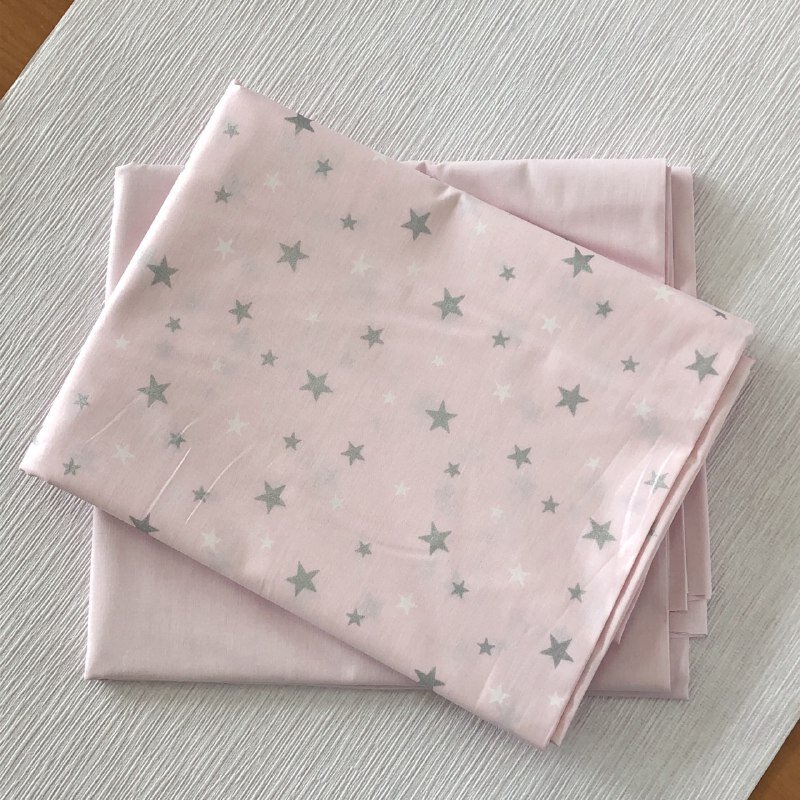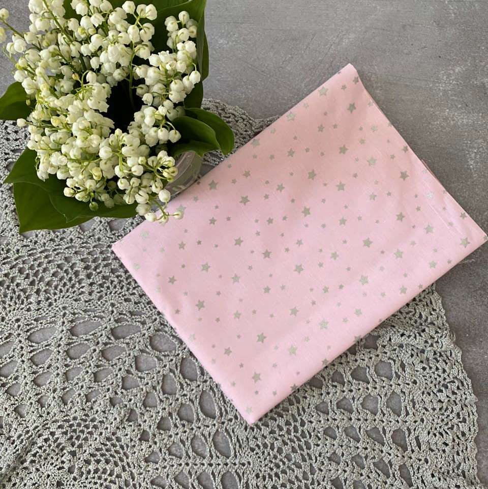Ранфорс пудрового кольору, зірки білі великі виробництва Туреччини - натуральна тканина, яка служить для виготовлення домашнього текстилю, переважно дитячих комплектів.