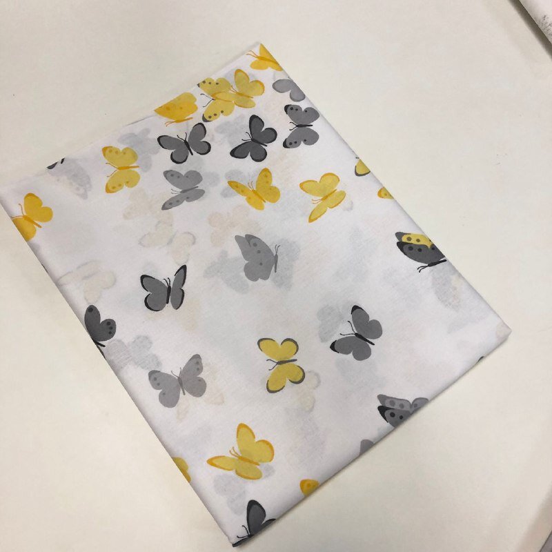 Ранфорс Метелики сіро-жовті виробництва Туреччини - натуральна тканина, яка служить для виготовлення домашнього текстилю, переважно дитячих комплектів.