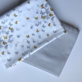 Ранфорс метелики із глитером сірі для дитячих комплектів виробництва Туреччини - натуральна тканина, яка служить для виготовлення домашнього текстилю, переважно дитячих комплектів.