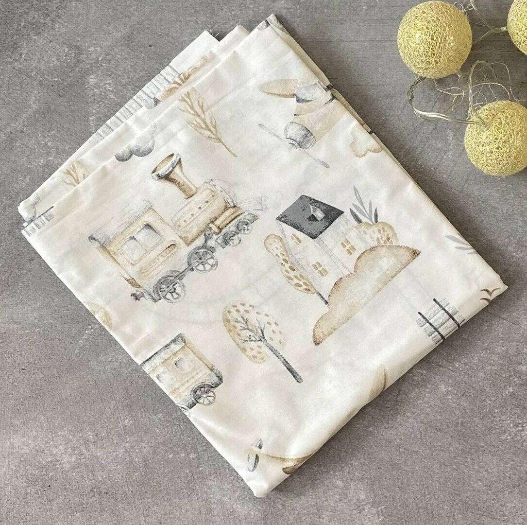 Ранфорс паровозики в бежевому кольорі виробництва Туреччини - натуральна тканина, яка служить для виготовлення домашнього текстилю, переважно дитячих комплектів.