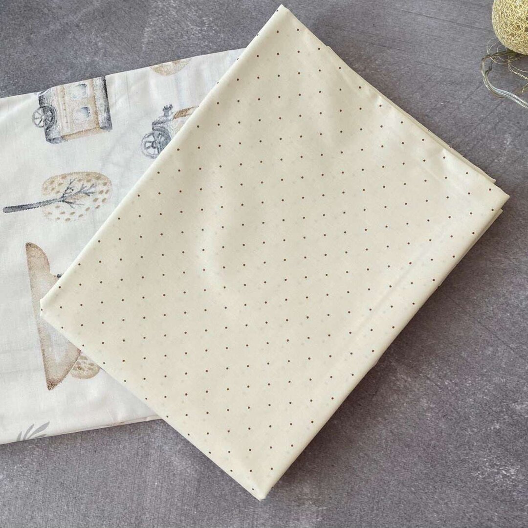 Ранфорс точки на бежевому виробництва Туреччини - натуральна тканина, яка служить для виготовлення домашнього текстилю, переважно дитячих комплектів.