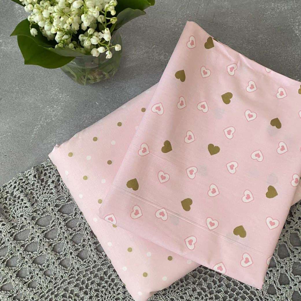 Ранфорс рожевий сердечки глітер виробництва Туреччини - натуральна тканина, яка служить для виготовлення домашнього текстилю, переважно дитячих комплектів.