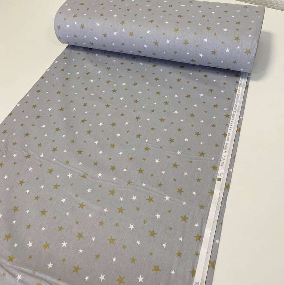 Ранфорс сірий, зірки золото глітер виробництва Туреччини - натуральна тканина, яка служить для виготовлення домашнього текстилю, переважно дитячих комплектів.