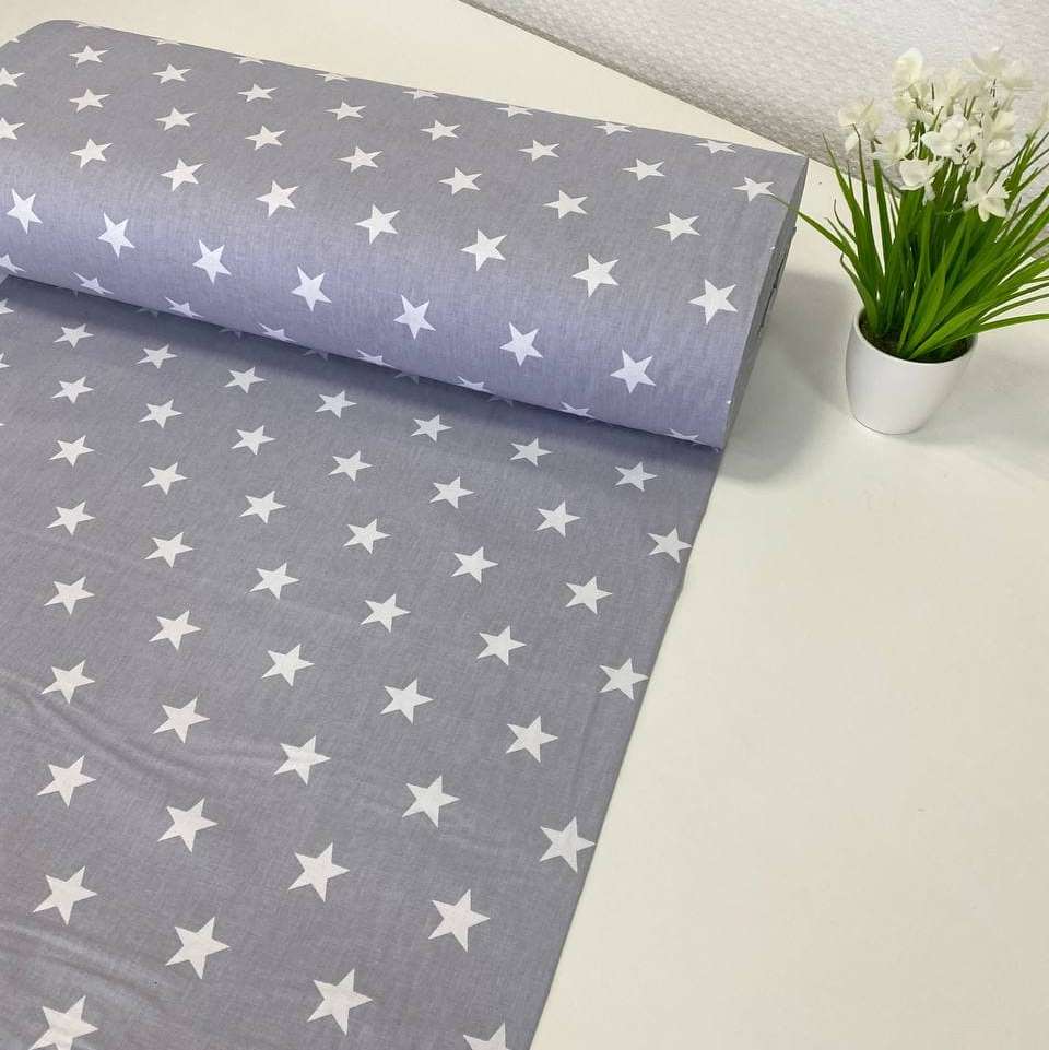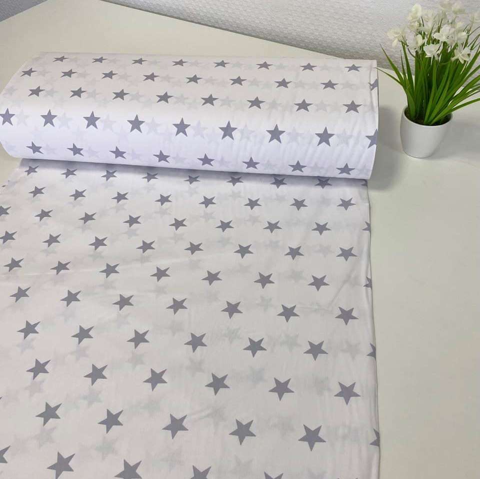 Ранфорс зірки великі на сірому виробництва Туреччини - натуральна тканина, яка служить для виготовлення домашнього текстилю, переважно дитячих комплектів.