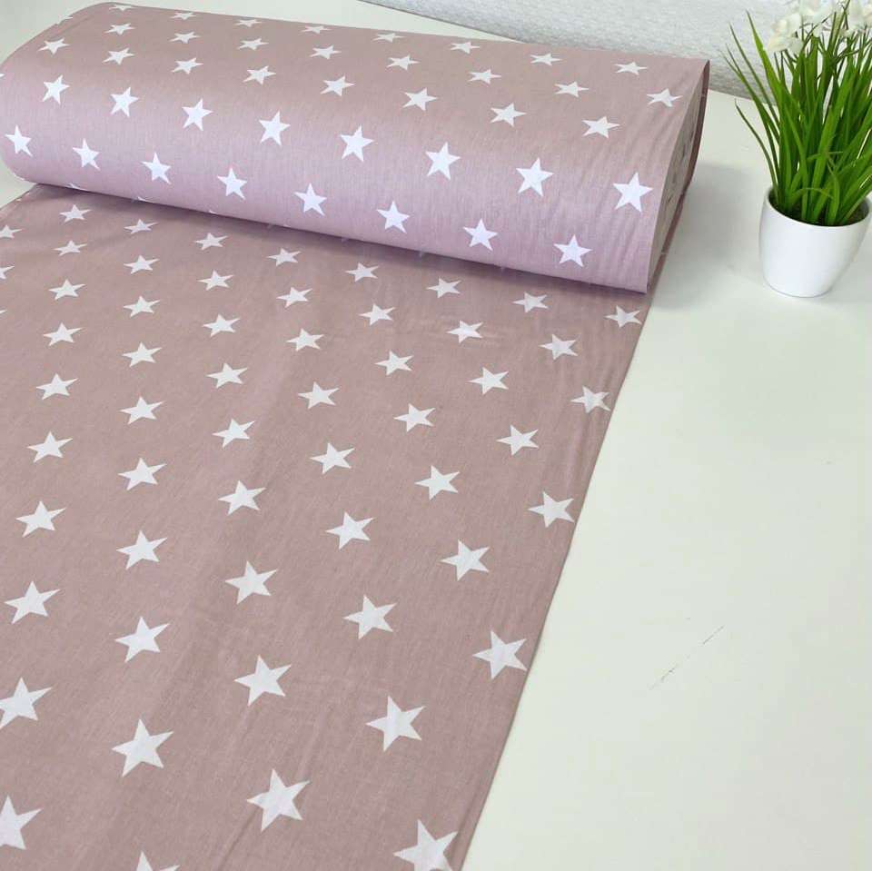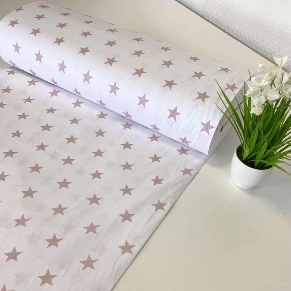 Ранфорс білий, зірки пудрового кольору виробництва Туреччини - натуральна тканина, яка служить для виготовлення домашнього текстилю, переважно дитячих комплектів.