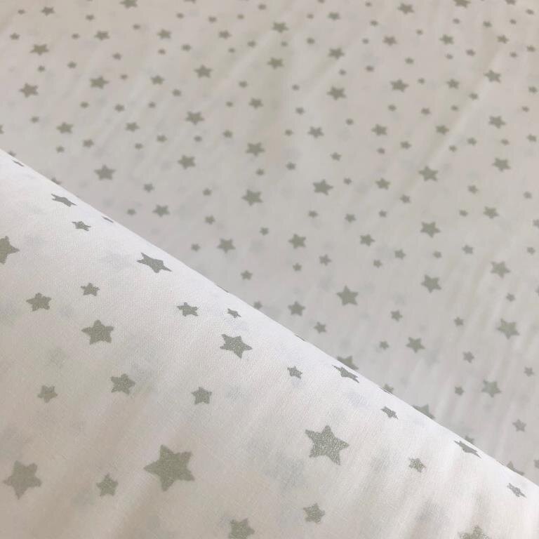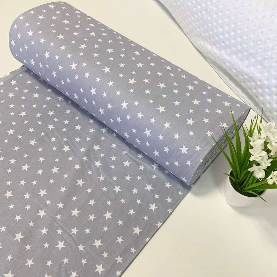 Ранфорс сірий з білими зірками, зорепад виробництва Туреччини - натуральна тканина, яка служить для виготовлення домашнього текстилю, переважно дитячих комплектів.