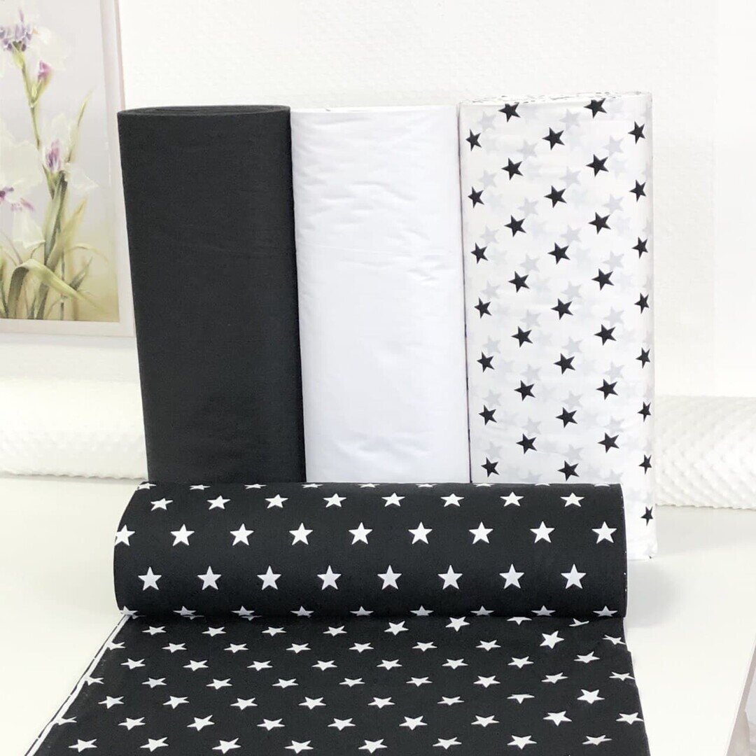 Ранфорс білий зірки чорні великі виробництва Туреччини - натуральна тканина, яка служить для виготовлення домашнього текстилю, переважно дитячих комплектів.