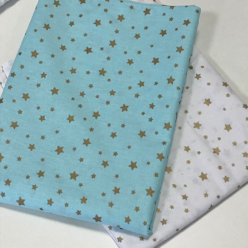 Ранфорс м'ятний з зірками золотими виробництва Туреччини - натуральна тканина, яка служить для виготовлення домашнього текстилю, переважно дитячих комплектів.
