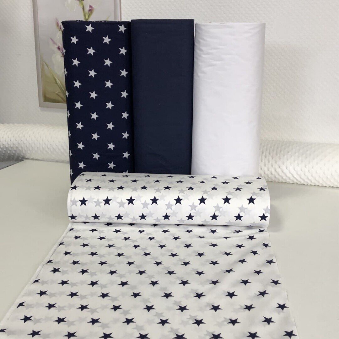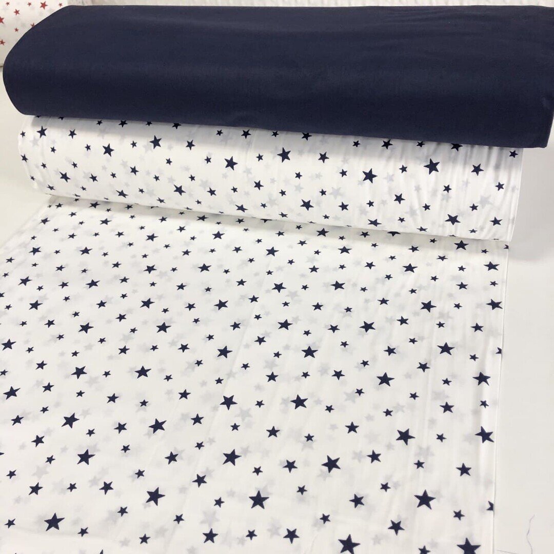 Ранфорс зірки великі на темно-синьому виробництва Туреччини - натуральна тканина, яка служить для виготовлення домашнього текстилю, переважно дитячих комплектів.