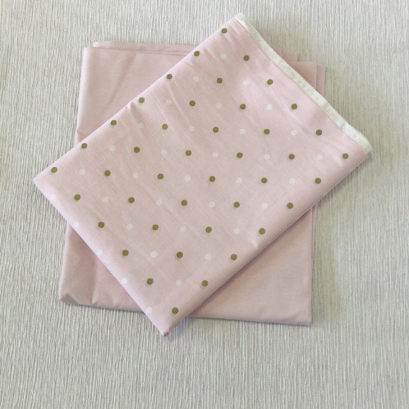 Ранфорс рожевий в білий та золотий горох виробництва Туреччини - натуральна тканина, яка служить для виготовлення домашнього текстилю, переважно дитячих комплектів.