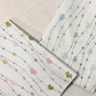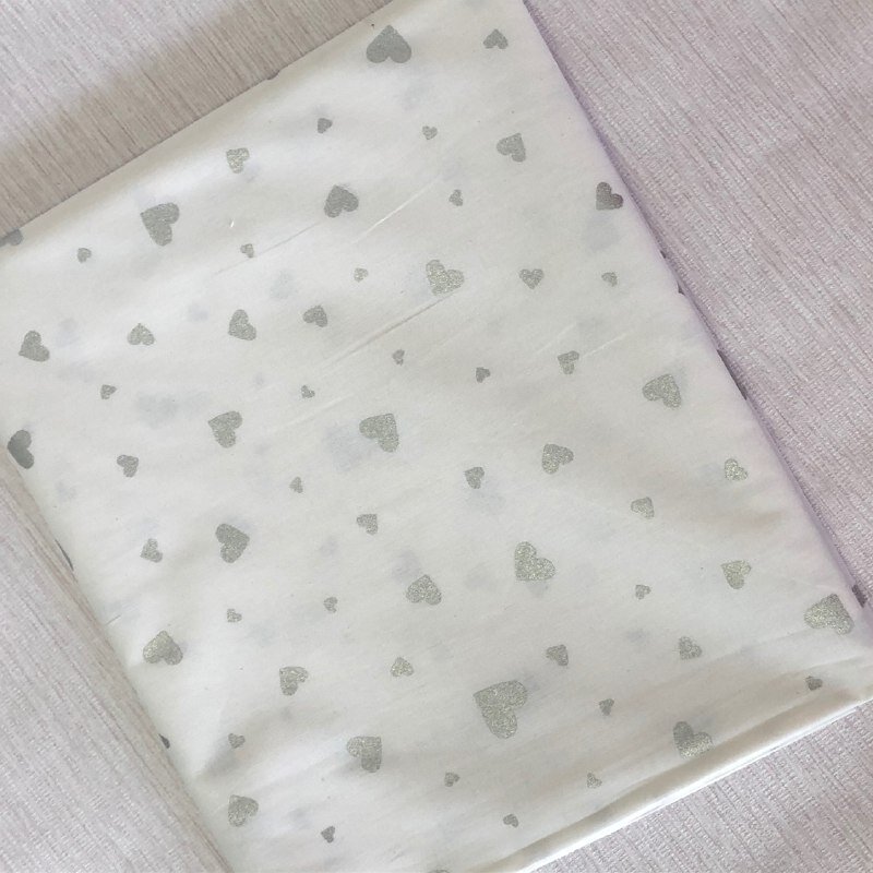 Ранфорс білий з глитером два серця виробництва Туреччини - натуральна тканина, яка служить для виготовлення домашнього текстилю, переважно дитячих комплектів.
