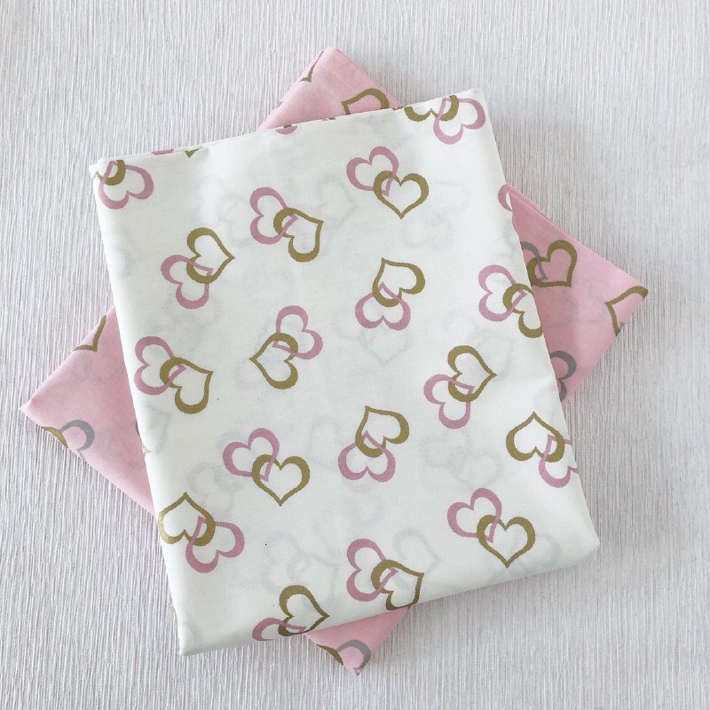 Ранфорс рожевий з глитер два серця виробництва Туреччини - натуральна тканина, яка служить для виготовлення домашнього текстилю, переважно дитячих комплектів.