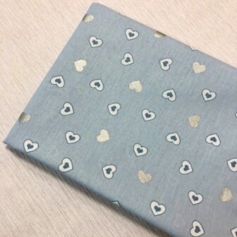Ранфорс сердечка на блакитному з глітером (Ranfors hearts on blue with glitter) виробництва Туреччини - натуральна тканина, яка служить для виготовлення домашнього текстилю.