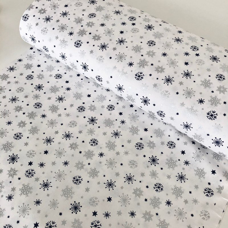 Ранфорс Сині сніжинки срібло виробництва Туреччини - натуральна тканина, яка служить для виготовлення домашнього текстилю.