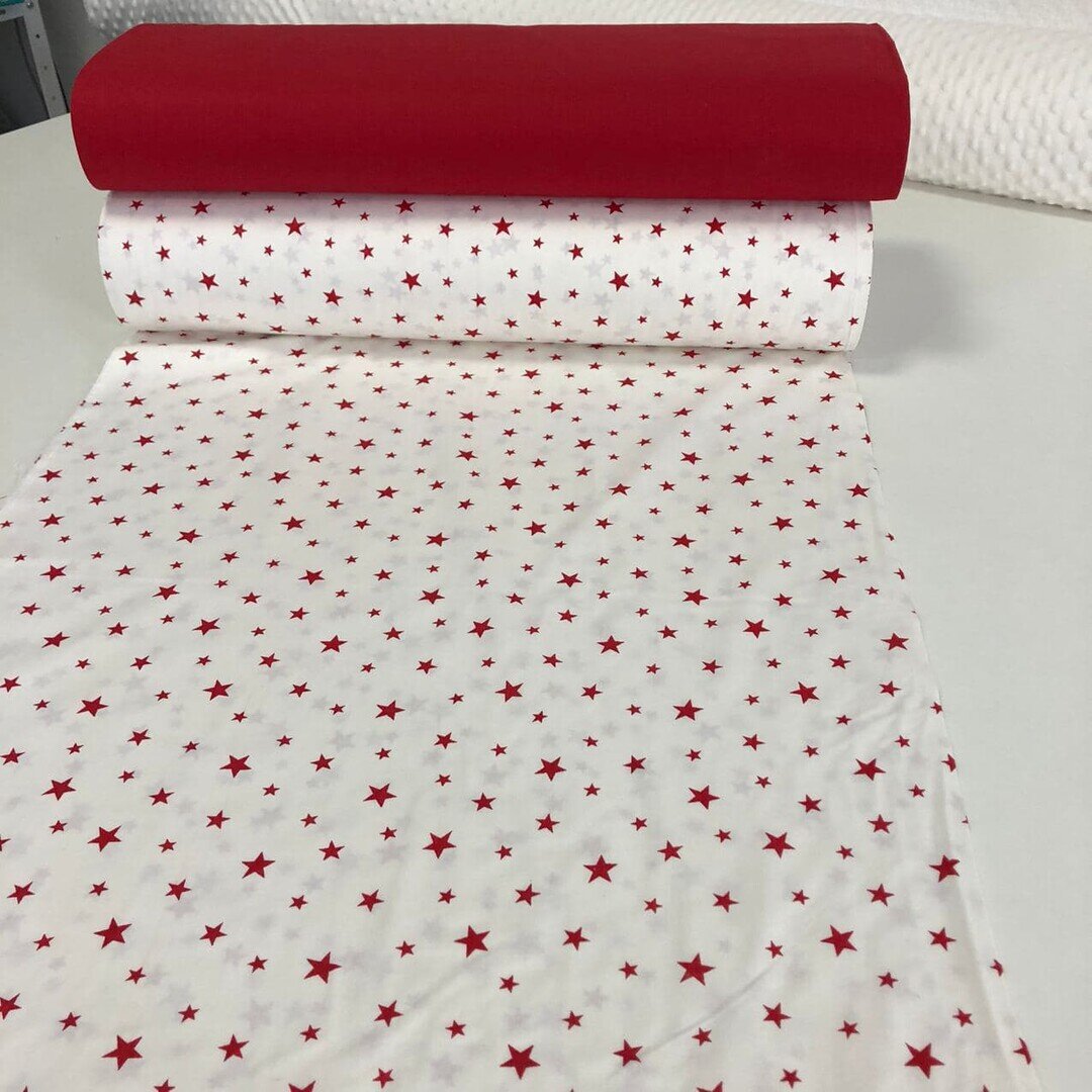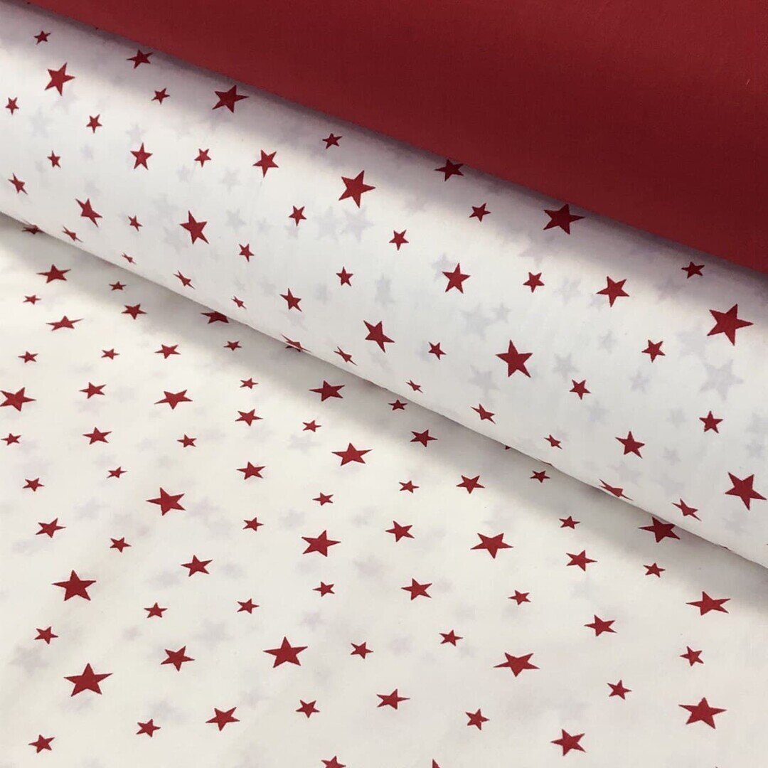 Ранфорс зірки великі на червоному виробництва Туреччини - натуральна тканина, яка служить для виготовлення домашнього текстилю, переважно дитячих комплектів.