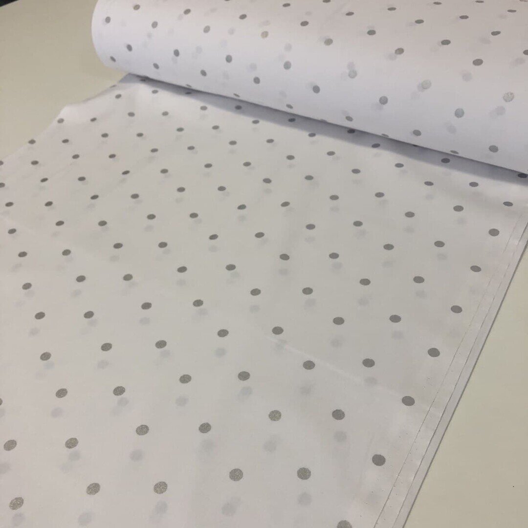 Ранфорс білий в горох срібло виробництва Туреччини - натуральна тканина, яка служить для виготовлення домашнього текстилю, переважно дитячих комплектів. Чудові новорічні принти для любимих.