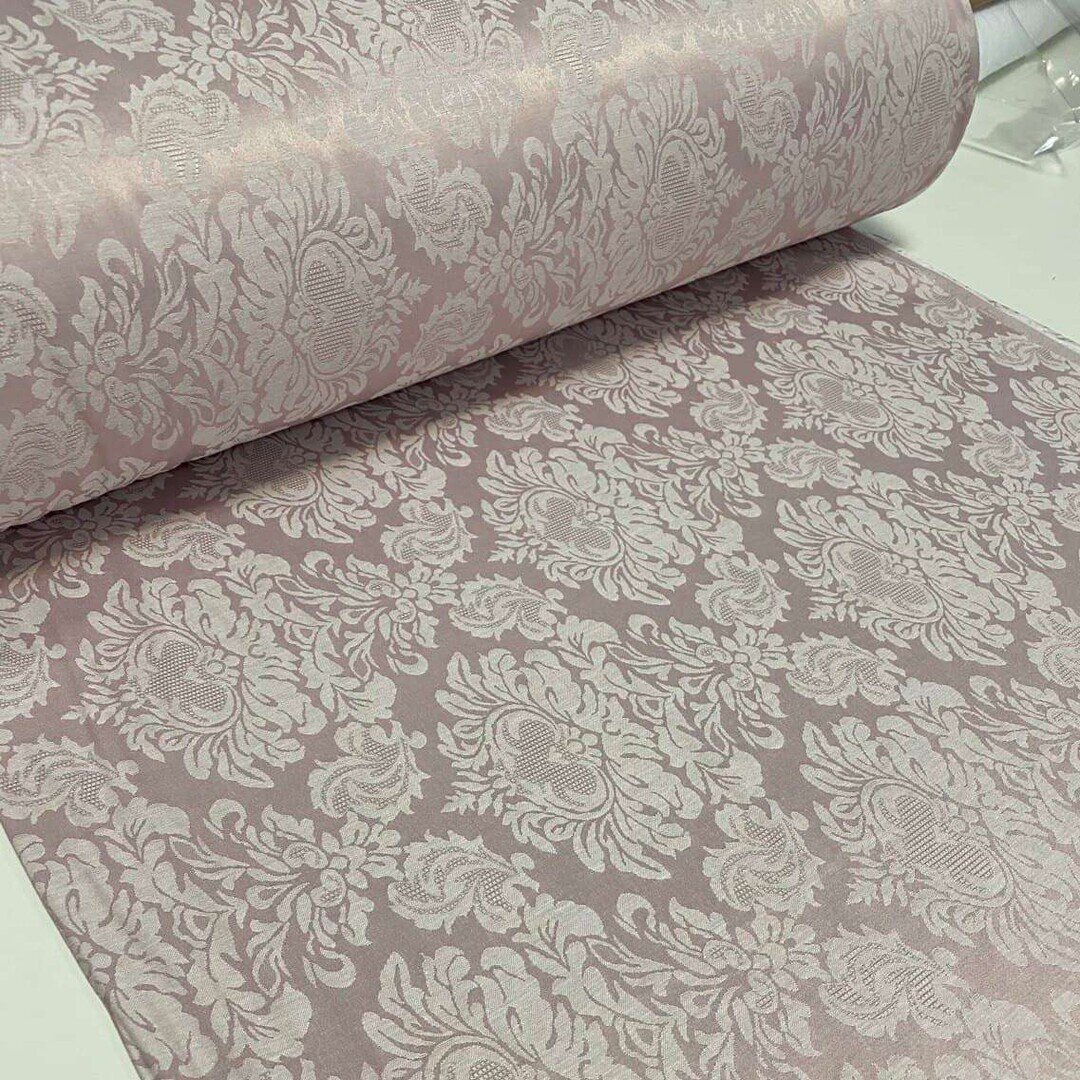 Сатин Жаккард Пудровий з візерунком Дамаск виробництва Туреччини - натуральна тканина, яка служить для виготовлення домашнього текстилю.