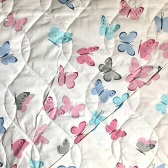 Стьобане полотно рожеві метелики / зигзаги (Quilted canvas - pink butterflies / zigzags) - прошиті наскрізь два шматки тканини, між якими знаходиться шар нетканого матеріалу.